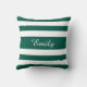 A stylish and unique minimalist green and white bold striped pattern throw pillow with a customisable white name monogram printed in the centre. Easily personalise it with your name or monogram by changing the template name in the template field.