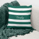 Green & White Stripes Pattern Name Monogram Cushion