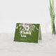 This modern thank you card features a watercolor Christmas bouquet made from forest foliage set on an olive green background. In the centre says Thank You in a white, extra large bold headline font. You can personalise with a message and your names. The inside is a coordinating solid green background.