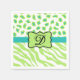 Green White Zebra Leopard Skin Monogram Initial Napkin