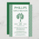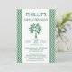 This family reunion announcement invitation features a green family tree, green text for your party information, and a green and white zig zag border.