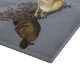 This cutting board features a photograph of a green-wing teal duck on a peaceful lake.