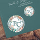 Green Winter Eucalyptus Pinecone Wreath Initials Classic Round Sticker