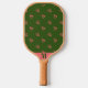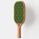 This modern pickleball paddle design features a green with pink hearts background, with your initial in bold green text for a look that is simple and stylish, yet professional.