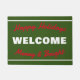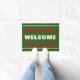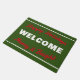 Make your guests feel merry and bright when visiting your home or office during the holiday season with this simple welcome doormat that features red and white lettering on a dark green background.