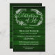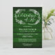 An elegant rustic celebration of life remembrance invitation featuring a hand-drawn foliage garland on a green wood panels background. Designed by Thisisnotme©