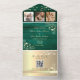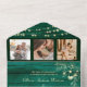 Celebrate your love with our elegant, country-inspired all-in-one wedding invitation. Featuring a stunning combination of gold and rustic wood with emerald green accents, this design is adorned with string lights and vintage boho floral lace. Personalise it with four custom photos of the couple, and include your website and QR code for RSVP and additional details.
