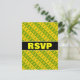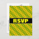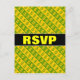 This RSVP postcard design features green dollar sign symbols within yellow stripes, and yellow dollar sign ($) symbols within green stripes. It could make a great gift for somebody who works in the finance industry (such as an accountant, or an investor, or in banking), or perhaps for somebody who is into collecting monetary bills and coins. It also features a custom RSVP form on the back, along with a custom address that the completed RSVP cards would be mailed to.