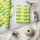 Wrapping paper features an original marker illustration of a green and yellow alligator, printed on a yellow background.