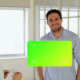 Business card template with beautiful green yellow gradient background and grey fonts .Simple and trendy design by Alma Wad .Personalise both sides now .It comes 100 in a pack .