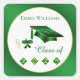 Green and gold (yellow) Mortar cap and diploma Graduation class of 2025 round Sticker