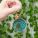 Green Yellow Spiral Paint Pour Design Key Ring