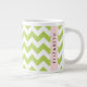 Green Zigzag, Green Chevron, Your Name Large Coffee Mug