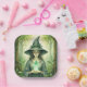 These party plates feature a watercolor whimsical witch holding a green crystal