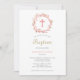 Greenery and Cross Coral Gold Baby Girl Baptism Invitation