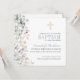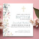 Enjoy this beautiful greenery border on left with cross at top. Below cross are text templates for invitation, and on back the same design with a heart shaped photo template for your baby.