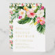 Invite guests to your wedding with this customisable foil pressed couples shower invitation. It features watercolor garland of hibiscus, plumeria, palm leaves and other tropical plants. Personalise this tropical couples shower invitation by adding your own details. This gold foil couples shower invitation is perfect for destination and summer couples showers.