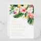 Invite guests to your wedding with this customisable foil pressed wedding shower invitation. It features watercolor garland of hibiscus, plumeria, palm leaves and other tropical plants. Personalise this tropical wedding shower invitation by adding your own details. This gold foil wedding shower invitation is perfect for destination and summer wedding showers.