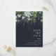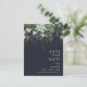 We designed this greenery and gold dark navy save the date postcard to complete your simple yet elegant boho wedding. It features modern green and white eucalyptus leaf, fern foliage, a succulent flower, and minimal gold foil leaves. These elements give the feel of a whimsical watercolor enchanted forest, perfect for any rustic, bohemian wedding! Feel free to customize and make it your own; also, feel free to look through the rest of the collection for matching and coordinating products!