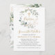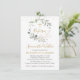 Baby Baptism/Christening Invitation Card. This design features an illustration of green and golden foliage in watercolor style with golden effect confetti on the top