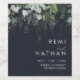 Greenery and Gold Leaf | Dark Navy Wedding Wine Label