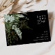 We designed this greenery and gold leaf script black horizontal save the date to complete your simple yet elegant boho wedding. It features modern green and white fern foliage, a succulent flower, and minimal gold foil leaves. These elements give the feel of a whimsical watercolor enchanted forest, perfect for any rustic, bohemian wedding! Feel free to customise and make it your own; also, feel free to look through the rest of the collection for matching and coordinating products!
