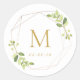 Greenery and Gold Wedding Initial Classic Round Sticker