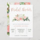 This trendy and simple bridal shower invitation features watercolor green foliage and leaves with pretty pink and white flowers, along with modern faux rose gold look handwritten script