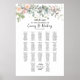 Elegant wedding seating chart with greenery and peach roses, up to 17 tables