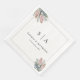These Australia themed paper wedding napkins feature an elegant design of green eucalyptus and pastel pink wattle, bringing a touch of botanical greenery to your event. Easy to personalise with custom text to make your wedding decor unique. These napkins offer a stylish addition to your table setting.
