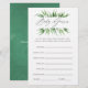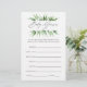 Organic inspired green and white eucalyptus leaves baby shower guessing game cards designed to be quickly and easily customised to your event specifics.