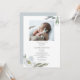 VG Invites greenery photo baptism or christening invitation frames your religious baby blessing event details with painted watercolor florals and greens in cool blue grey tones. The reverse is a complimentary solid grey colour. A modern yet organic choice your boy's Dedication day or bautizo bautismo,. Designed by Victoria. To see more visit www.zazzle.com/vginvites