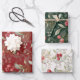 Traditional Christmas and holidays wrapping paper featuring an elegant illustration Greenery and berries and foliage in green, white and dark red