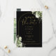 This elegant botanical greenery leaves black, and gold arch save the date invitation can be personalised with your information in chic modern typography with your special photo on the reverse. Designed by Thisisnotme©