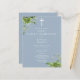 This elegant eucalyptus greenery botanical dusty blue first holy communion save the date invitation postcard can be personalised with your information in chic typography with monogram initials on the reverse. Designed by Thisisnotme©
