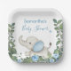 Greenery Blue Floral Elephant Baby Shower Paper Plate