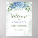 Greenery Blue Hydrangea Baby Shower Welcome Sign