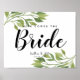 greenery botanical here comes the bride poster
