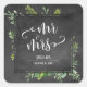 Greenery Bouquet Mr & Mrs Typography Chalkboard Square Sticker
