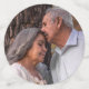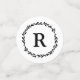 Elegant 40th wedding anniversary table confetti with photos of the couple, their initial inside a wreath, and forty years in a swirly script in black and white.