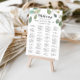 This greenery calligraphy alphabetical seating chart is perfect for a rustic wedding. The design features hand-drawn botanical green eucalyptus branches and leaves.