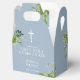 This elegant eucalyptus greenery botanical dusty blue first holy communion favour box can be personalised with your information in chic typography. Designed by Thisisnotme©