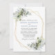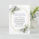 Modern Elegant Watercolor Botanical Greenery Wedding Invitation Card includes eucalyptus leaves, green botanical foliage, dusty blue leaves and other beautiful botanical greenery. Gold Geometric Frame, Photo Back