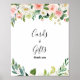 This greenery elegant floral cards and gifts sign is perfect for a rustic wedding or bridal shower. The design features lovely white, pink, and blush hand-painted roses and a touch of greenery, inspiring artistic beauty. Make the line of text at the bottom of the sign your own by including the date, the names of the bride and groom or a short message like "Thank you". This sign can compliment a wedding, any event or party.