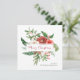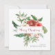 Elegant Greenery Merry Christmas Card. This beautiful square Christmas card features elegant watercolor red flowers with holly berries, pinecones, and greenery on white background with a 'Merry Christmas' in an elegant handwritten script | calligraphy. The back of the card includes a matching pattern. Find matching items in the Holiday Red Winter Botanical Christmas Collection.