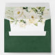 A White 5x7 envelope with Elegant Eucalyptus Lining Inside.