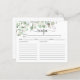 Greenery Eucalyptus Bridal Shower Recipe Cards