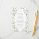 Immerse yourself in contemporary elegance with this details card designed for a romantic botanical nature themed wedding. Adorned with greenery and eucalyptus leaves intertwined with white rose floral wreath. This customisable card allows you to personalise your wedding experience, adding a modern touch with an optional monogram on the back, enhancing the overall sophistication of your rustic summer or fall celebration.