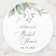 Add a personal touch to your bridal shower celebration with these stylish and memorable party items! Design features eucalyptus leaves and greenery on white background.