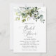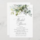 Invite friends and family in style and set the tone for your special day with this charming bridal shower invitation. Design features eucalyptus leaves and greenery on white background.